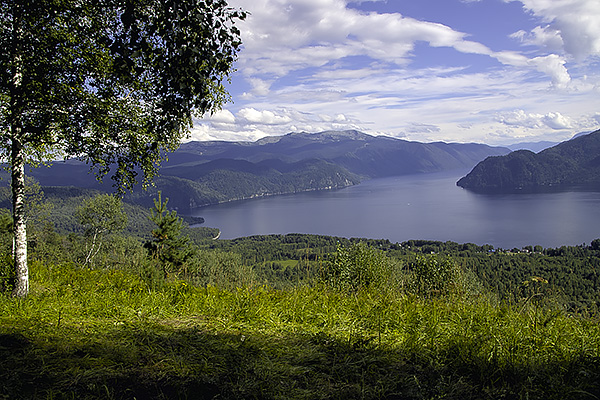View from the observation deck of Teletskoye Lake (village of Yaylu, Turochaksky district, Altai Republic, Russia)